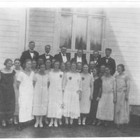 Tekst: Torill Juel, skannet fra Skauger Se mer i Skauger 1976 des. "Vil gjerne få sende Skauger et foto av 8 medlemmer i Skoger Blindesaksforening, som alle ble tildelt "Blindesaksnålen" under foreningens 40 års jubileum 2/2-1974. Det er Norges Blindeforbund som utdeler dette hederstegnet til medlemmer av blindesakslag som har virket aktivt for blindesaken i minst 20 år". D J