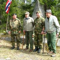 Fra venstre på bildet ser vi: NN, Gunnar Båsen, NN, Sverre Skurdal