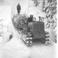 Ragnar Storebråten kjører Clettra beltetraktor med tømmer til velteplass.