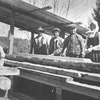 Andorsrudsaga med vannkraft. Fra v. Kai Fjeld, Gjerterud ( Lillemor ) Borge, Emil Tollefsen, Oluf Haveraaen, Amund Kritiansen ( Kjøyta ), Olaug Bjørnsen.