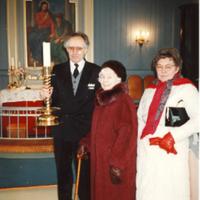 Kjeld Jegh , Han var kirketjener med lysestaken som var gave fra Thorbjørn Engebretsen, organist i Konnrud Gamle Kirke. Inga Josefine Nielsen ( f.Pettersen) og Karen Sveen. Kjeld Jegh var fra Danmark. Inga Josefine Nielsen (f.Pettersen 01.07.1904) Bodde på Solliberget som ligger i Dalenveien. Mor til Anne-Lise Møller-Nilsen. Karen Sveen er aktiv i Konnerud menighet som organiserer tilstelninger i kirken f.eks. kirkekaffe. Sammen med Karin Aas var de radrapar ved severinger og matlaging på sanitetshuset.