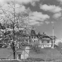 Postkort av Konnerudkollen Turisthotell fra "storhetsdagene" før ombyggingen i 1950.Bildet er tatt med Stordammen "bak ryggen" på fotografen.