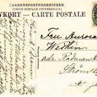 Kortet sendt av gjest på Konnerudkollen Turisthotell ca 1905 til Venn/familie i Strømstad. Huset i forkant er bad/vaskeri ved bekken som fortsatt renner forbi. Se mer omtale av hotellet på bilde nr. 43.