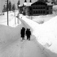 Konnerudkollen turisthotell. Ella Pedersen på tur med sine to døtre : Gerd og Åse. Konnerud Sanatorium ble bygget på gården Eskerud i 1896. Byggherre var: Grosserene Brecke, Rudolp og Andersen. Senere overtatt av hotelleier Jens Henriksen fra Tønsberg som utvidet til hotell. Etter første verdenskrig omdøpt til Konnerudkollen Turisthotell, drift til ca. 1940. Etter krigen ble hotellet benyttet som en underavdeling av Univerisitet i Oslo for 107 norske kostholdsstudenter som studerte engelsk over to semestre. De bodde på hotellet sammen med sine lærere. Denne form for college var en ny form for universitet i Norge. Kort varighet, fordi hotellet ble solgt til Europahjelpen i 1949 som mottaksstasjon for flyktninger .Siden brukt til kursted. Hotellet ble ombygd til det ugjenkjennelige i 1950. Staten overtok hotellet vedrlagsfritt i 1951 og det ble brukt som en underavd. til Lier sykehus i 1956. Hotellet brant sommeren 1967.