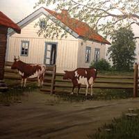Brekke gård i forgrunnen, Løvåsjordet i bakkant som i dag (2020) er en populær akebakke. Løvås gård (tidligere Tufte) i bakgrunnen er revet.