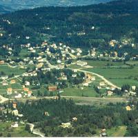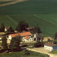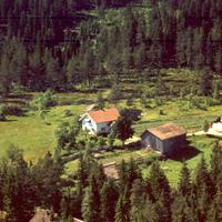Gården midt på bildet er Langeland Den er helt borte nå (2015), men den lå mellom Verksveien og Brokkvollveien. Eier var Gustav Langeland (1877-1961). Han var gift med Maren Anette f. Johansen (1872-1943. De fikk barna Karsten (1901-1970), Borgine f. 1907, Arthur, (1909-1959) og Asta f. 1913. Gården hadde g.nr. 80 br nr. 14 og 15. Låven (uthuset) helt til høyre i bildet tilhørte Simen Langeland d. 1931. Han var gift med Hansine d. 1938. De hadde ingen barn. Gården står oppført som Langeland br.nr.11 i Skogerboka fra 1931.