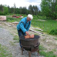 Reidar Halden (dugnadsleder) griller pølser under "kranselaget".