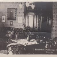 Postkort fra 1939: Interiør fra Solbakken Pensjonat på Konnerud