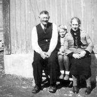 Bildet er tatt i Kobbervikdalen, som barn sa vi " Dælane". Det er mine besteforeldre Bertha Johansen og Karl Johansen som sitter her. Klemt innmellom sitter min kusine Ingjerd Brunes ( Johansen) Karl f. d.1948 Bertha f. 1874 d,1957 Ingjerd f, 25.09.1939