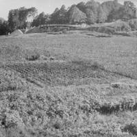 Parseller mellom Strømsø sykehjem og Austad Gård. Legg merke til låven på Austad i bakgrunnen. Broen over Vestfoldbanen sees midt på fotoet og veien het ( heter ) Austadalleen, den ble stengt for kjøring omkring |960