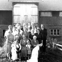 "Den store Barnedåpen" , alle samlet på låvebrua til Oskar Stubberud, Rustand-familien og fam til Stubberud.og Gomperud folk. Barnedåpen til Jon og Randi Rustand som er søskenbarn. Jon er sønnen til Kari og Olaf Rustand mens Randi er datteren til Ragnhild og Øivind Rustand. Foran fra v: Randi Rustand, Trond Rustand , Liv Rustand og Jon Rustand. 2. rekke: Sofie Thorsberg, Petra Rustand, Prøis 3. rekke:Ragnhild Rustand, Sofie Gurrik,?,? og Kari Rustand F Prøis. 4.rekke:Øivind Rustand, Åse Thorsberg Eriksen,? Owe Eldar Stubberud på armen, Oskar Gurrik. 5 rekke: Delvis skjult Elna Strubberud. Bak i midten (lyst hår) Hans Gompsrud. Helt til høyre Jakob Rustand. Olaf og Øyvind Rustand vokste opp i Hof der foreldrene Petra og Jakob bodde.
