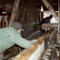 Harald Johansen (Springover) og Per Skjeldrum bakerst Den siste dagen det var skur på Skjeldrumsaga