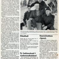 • Tekst Reidar Halden: Andorsrudbakken ble bygget på dugnad i 1936. A/S Selvik Bruk eier bakkeområdet. Det første hopprennet ble arrangert 2. påskedag 1937. Tiedemanns Tobakkfabrikk satt opp pokal til beste kombinerte løper. Den ble vunnet av John Johnsen fra Holland i Vestbygda. Erik Kittilsbråten vant spesielt hopp. I 1952 ble det satt opp flombelysning i bakken, som var flittig i bruk frem til 1968, da langrenn ble mer populært. I 1974 ble bakken satt i brukbar stand av Gisle Treholt med flere. februar 1975 nedsatte idrettslaget en bakkekomitè for Andorsrudbakken. Det ble deretter gjort en kjempeinnsats på 1400 dugnadstimer av bakkekomiteen og flere andre. Bakken ble bygget om med en helt ny profil og den fikk nytt stillas med flere avsatser og tribune, ferdigstilt i november 1976. Bakken er beregnet og tegnet av Ingolf Mork, og bakkerekorden kommer til å ligge på rundt 40 meter. Den nyrestaurerte hoppbakken ble innviet med områderenn for gutter fra 9 til 15 år søndag 12. desember 1976. 75 hoppere stilte til start, og rennet ble vunnet av Bent Wahlø fra Kongsberg i 15 års klassen. Av lokale resultater gjorde Børre Tørrhaug stor innsats ved å besette 3. plassen i klasse 15 år. Han satt også den offisielle bakkerekorden på 37 meter i samme renn. Barnas Skidag ble i årevis arrangert i og ved Andorsrudbakken, med «null-løp» som vi kalte det, to runder på samme tid og akekonkurranser. Dagen ble avsluttet med premieutdeling på Vestbygda skole. Fra 1990-årene opphørte hoppingen i Andorsrudbakken.