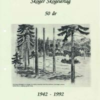 Jubileumsberetning etter 50 års drift av Skoger Skogeierlag. Hefte i plastomslag delt ut til alle medlemmer i 1992. NB! Sidene i heftet kan ikke vises direkte. Orginalfila må lastes ned og så åpnes på egen maskin. I Windows 10 virker det slik: Klikk «Last ned», det kommer opp et avlangt vindu nederst på skjermen, vent til nedlastingen er ferdig og klikk «Åpne». I andre operativsystem vil dette i prinsippet være omtrent likt, men se noe annerleds ut.