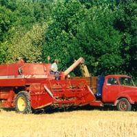 Tresking på Knive. Fører: Ingar A. Steen Tresker: Massey Ferguson 187, 1972 modell. Lastebil: Bedford J2, 1963 modell.