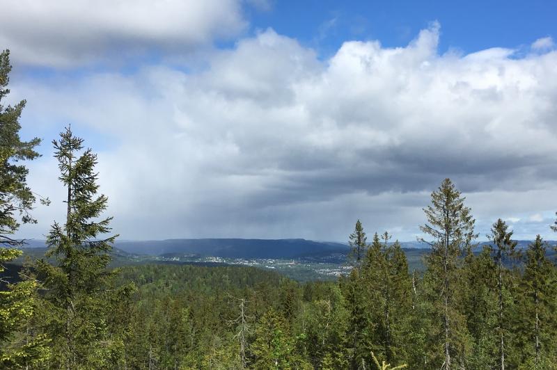 Utsikt fra Ryggetangslettås 530 moh på Vestskauen. Sande