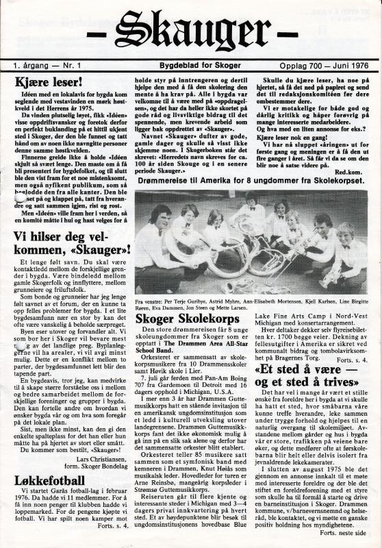 “Første utgave av bygdebladet "Skauger" juni 1976.,” Skoger og Konnerud historielags bildesamling, besøkt 26. februar 2026, https://mail.skhist.nettsidetesting.no/items/show/1222.