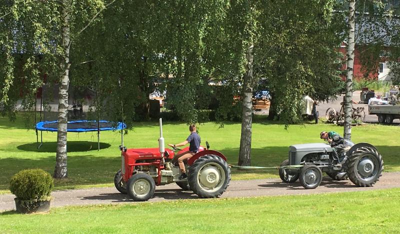 Noen ganger må en traktor draes i gang, her er det Jørgen som hjelper til med dette.