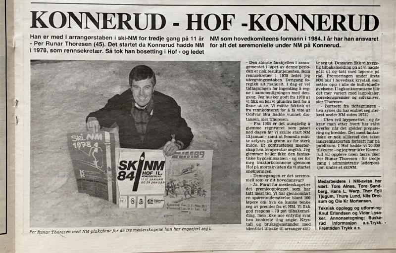 Per Runar Thoresen på bildet: NM i 1978 var han rennsekretær - NM 1984 var han Formann i hovedkomiteen - NM 1989 hadde han ansvar for alt det seremonielle