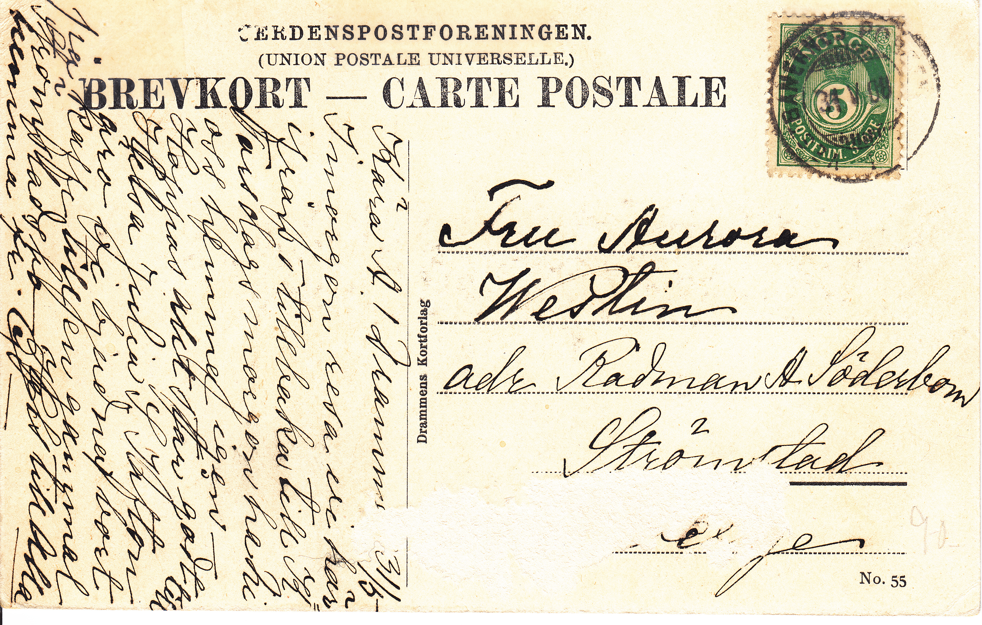 Kortet utlånt av Tor Alf Kristiansen.Tekst: Per Runar ThoresenSe alternativt bilde som viser tekstsiden på kortet. Postkortet er en del av en samling som ble kjøpt av Skoger og Konnerud Historielag i januar 2017.