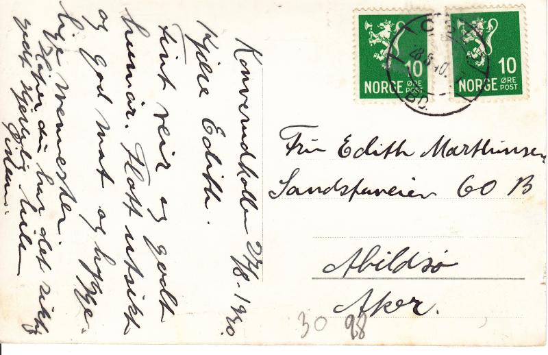 Bildet er tatt helt nede fra Skalstadkrysset og viser Konnerudkollen Turisthotell i bakgrunnen. Hotellet var på denne tiden drevet som et Sanatorium. Bygningen brant i 1967, Låven til venstre står der fortsatt og er restaurert av nåværende eier Dramdahl Erichsen. Kortet er sendt fra feriegjest til Abildsø ca. 1930. På bilde nr. 43 finnes mer omtale av hotellet.