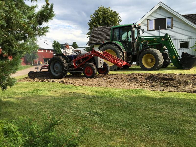 Gullfisken kommer fra Mogensen på Lindumhaugen. Skjæret bak på traktoren er en Planodin, produsert av Kverneland maskinfabrikk på Jæren.