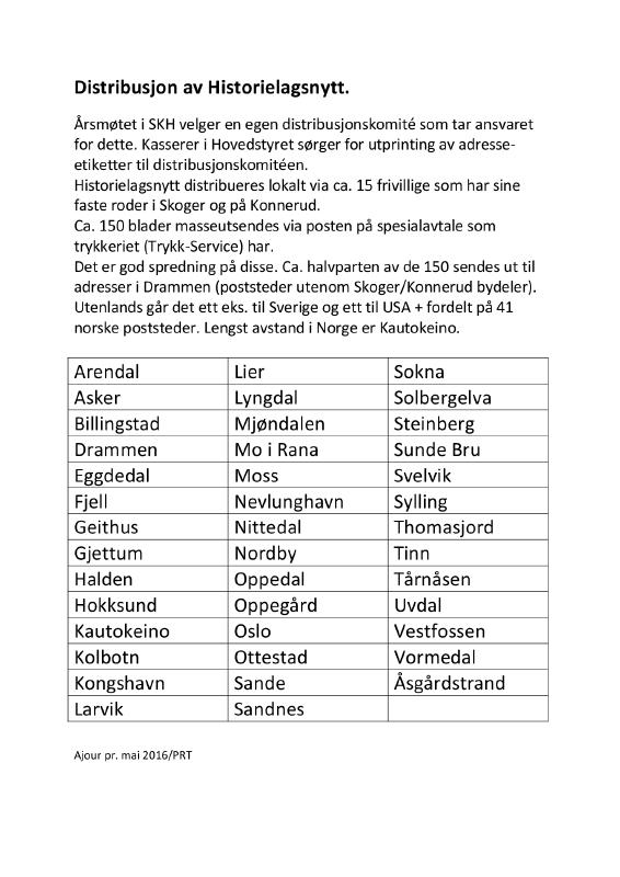 Informasjon om hvordan Historielagsnytt distribueres per mai 2016.