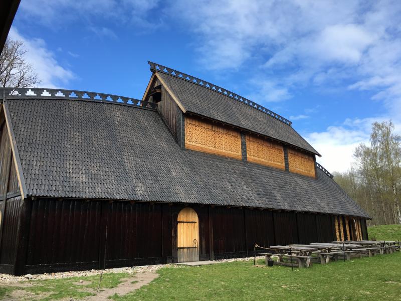 I Gildehallen, med åpen grue i midten fikk vi Viking-inspirert mat og drikke.
