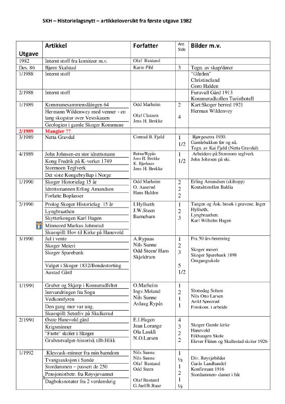 Historielagsnytt - artikkeloversikt