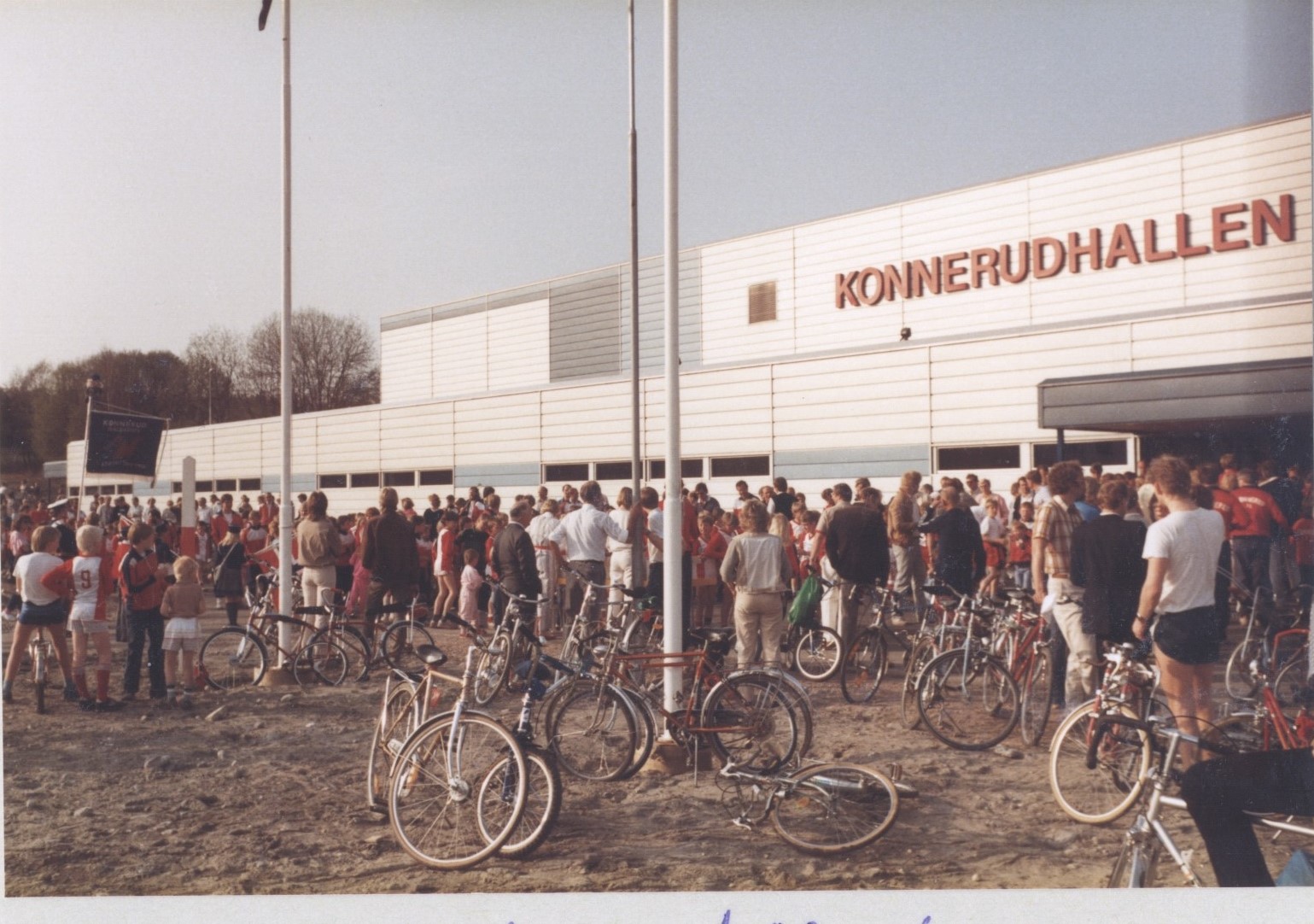 Bildet tatt av Karl Kubar ved åpningen av Konnerudhallen 15. mai 1985. Bidet hentet ut fra Albumgaven fra Kubar til KIL,