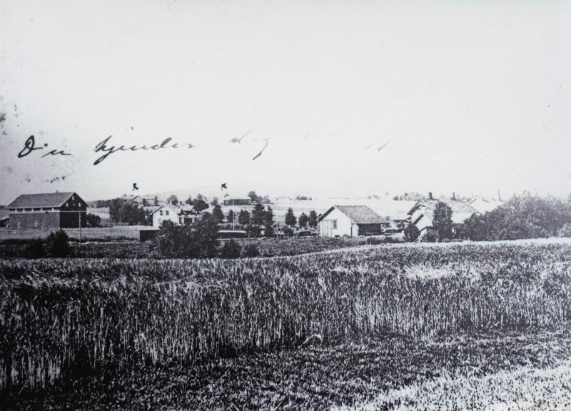 Midt i bildet: Skoger stasjon. Til venstre:Søndre Unnelsrud (Grimsrud). Denne gården tilhørte i sin tid oldefar til Kåre Willoch. I bakgrunnen: Her skimtes de to Unnelsrudgårdene til henholdsvis Even Unnelsrød og Ole Hans Unnelsrød (pr. 2014). Bildet må være ganske gammelt, antagelig fra før Riksvei 40 (seinere E-18) ble anlagt mens Sørlandske hovedvei fortsatt gikk gjennom det som seinere ble Stillerud boligområde og Tuftveien utover i Sande.