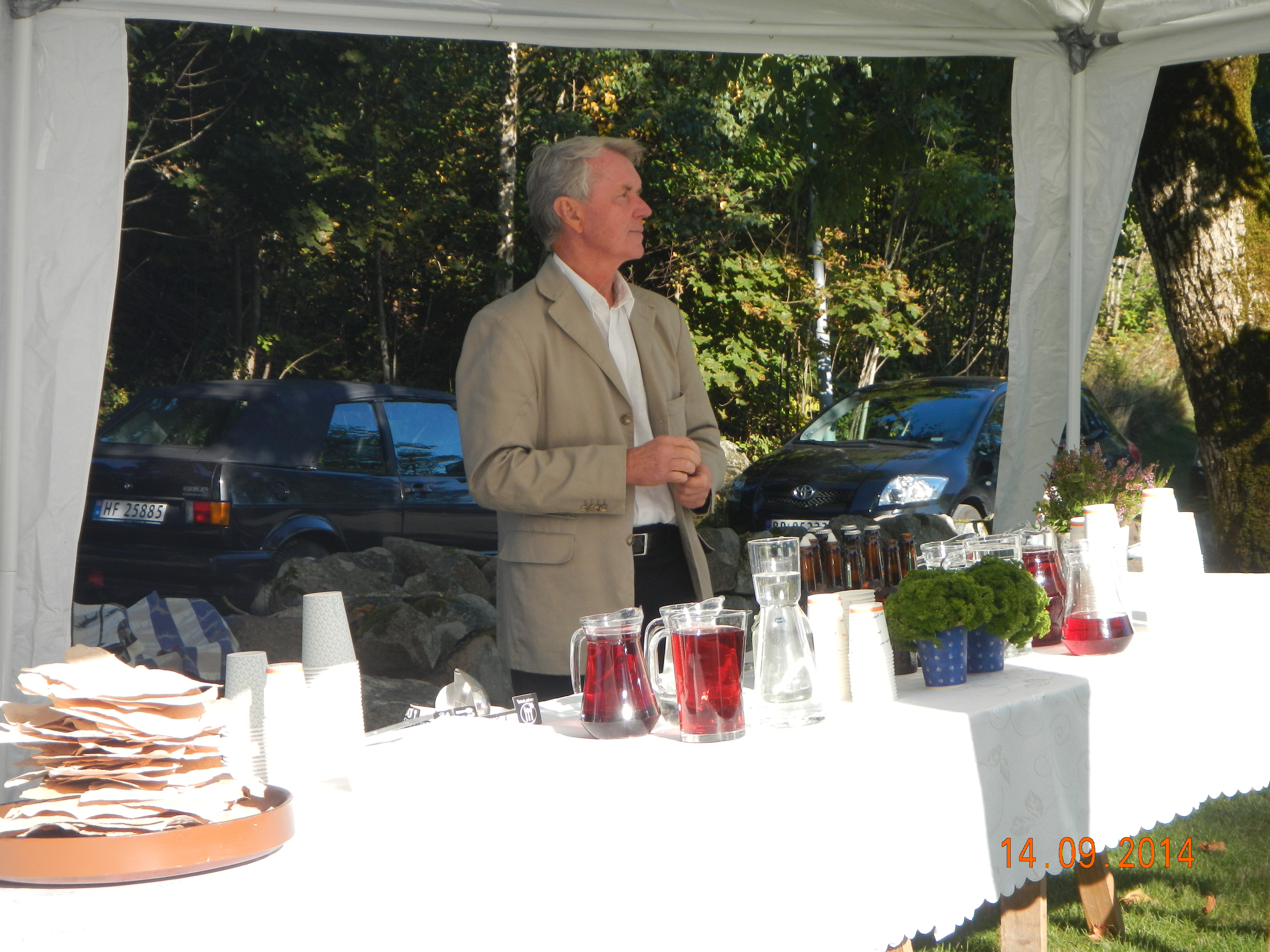 Hans Gundesø er klar med lapskaus, flatbrød og saft etter markeringen.