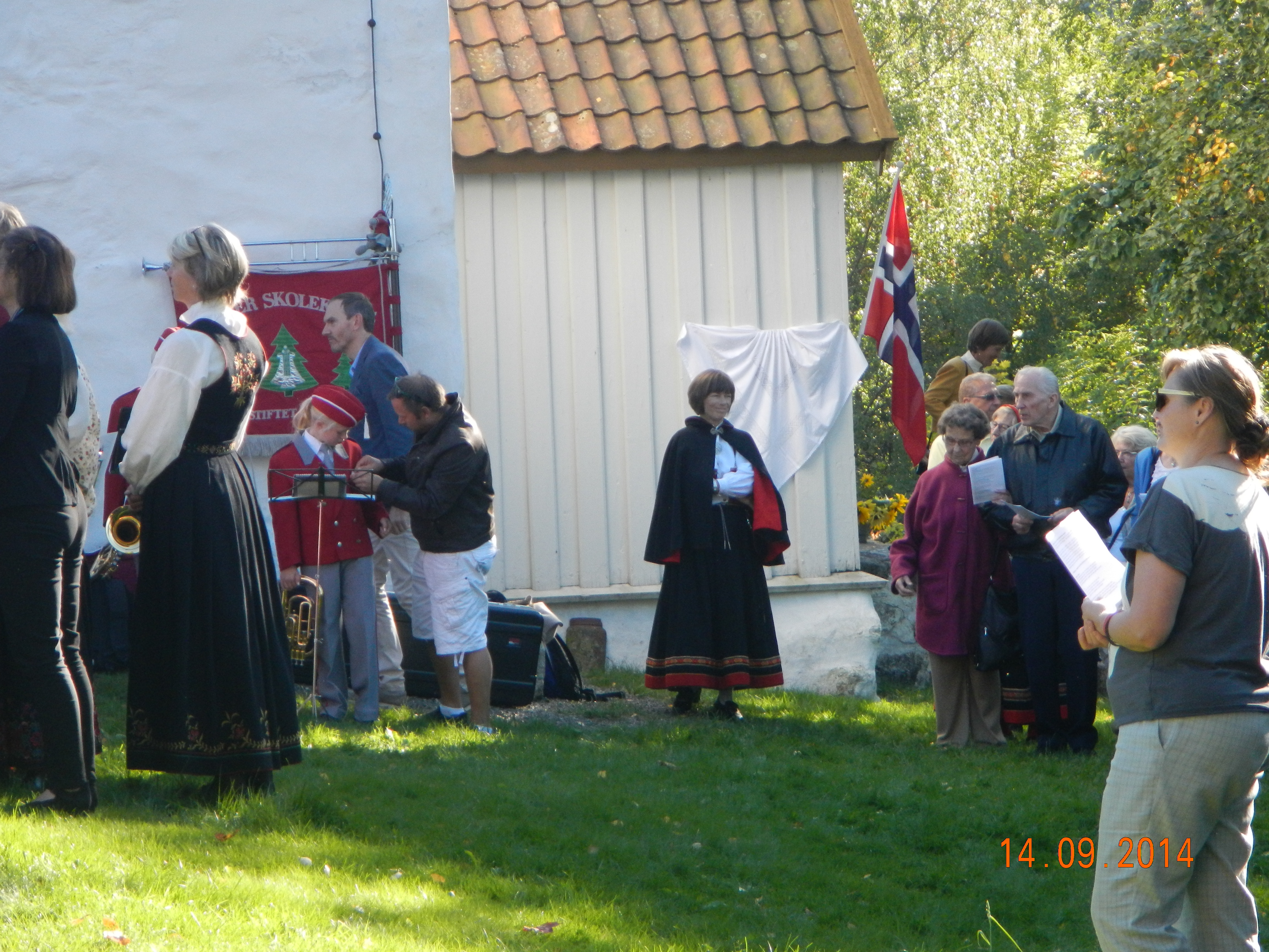 Før avdukingen av minnetavlen som ble hengt opp på kirkeveggen.