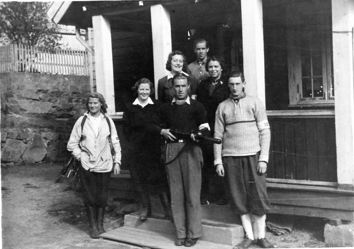 Første rekke fra venstre Randi Wiborg (yngste søster til Sigrid), Åse Backer-Owe (f. Sjuve), Lars Rolund, Egil Arenth. Bakerst fra venstre Gerd Inger Johannessen (f. Nilsen), Oddvar Rolund og Henny Lehn (f. Gjertsen).
