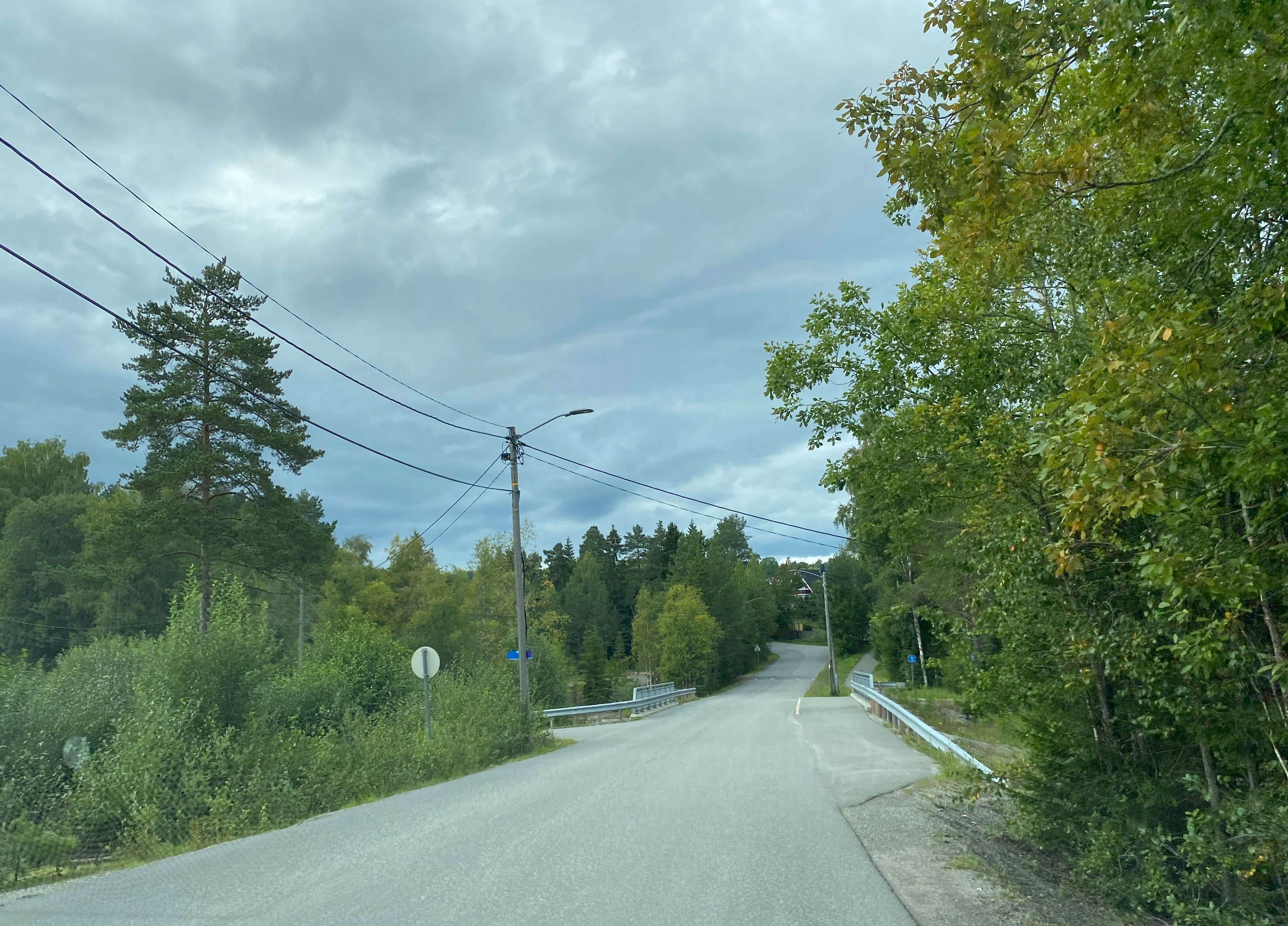 Jarlsbergveien mot brua over Verkenselva på Konnerud 2023