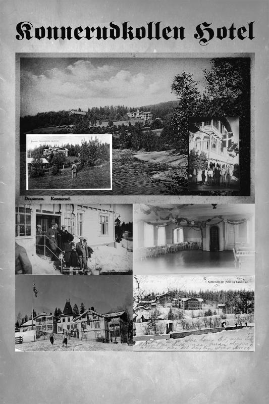 Plakat som ble brukt som illustrasjon da vandringen stoppet opp på "Hotelltomta" hvor det ble fremført et tablå. Enekltbilder finner du ved å søke på "Konnerudkollen Turisthotell" eller "Konnerudkollen hotell"