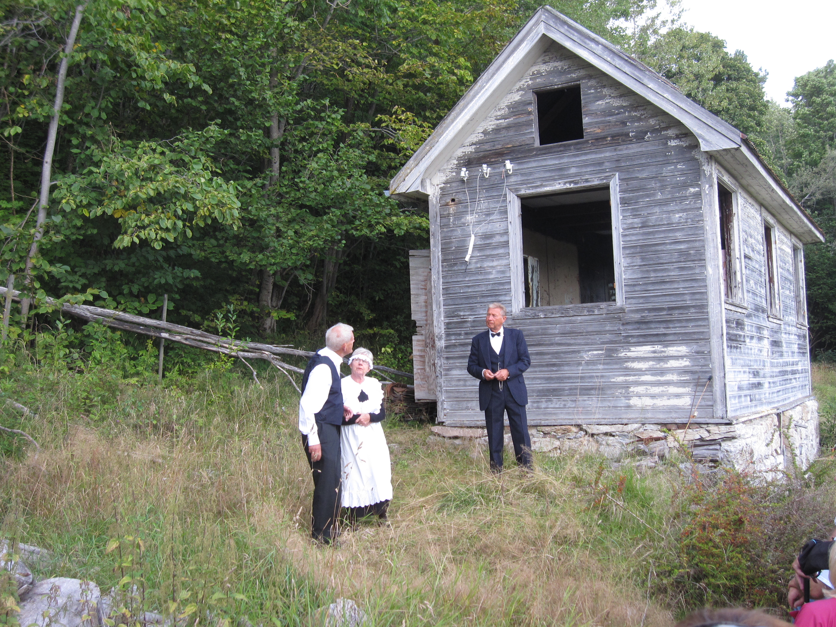 Fremføring av tablå på hotelltomta. Kai Roger Olsen, Karin Johansen og Jan Ekeberg er i aksjon på vegne av Det Dramatiske Selskab.
