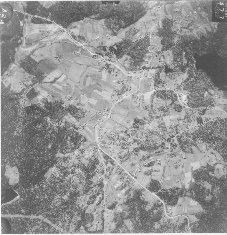 Vi er ikke sikre på når dette bildet er tatt, men det er før Lønnerud-feltet ble utbygd. (Det ble gjennomført i regi av Skoger kommune - altså før 1964). Øverst til venstre ser vi Stordammen og nederst til høyre finner vi Haddelandsdammen.