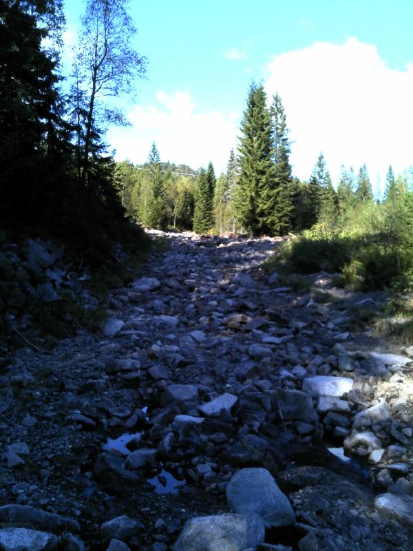 Uværet "Frida" som kom inn på ettermiddagen 6.8.2012 og herjet også natt til 7.8.2012, gjorde store skader i Eikerbygdene. På Vestskogen ble mange av skogsbilveiene til Selvik Bruk helt eller delvis ødelagt. Bildene viser hvordan det så ut oppover Katthusdalen etter "Frida". Skogsbilveien var for en stor del fullstendig rasert og erstattet av et eleveleie med store steiner.