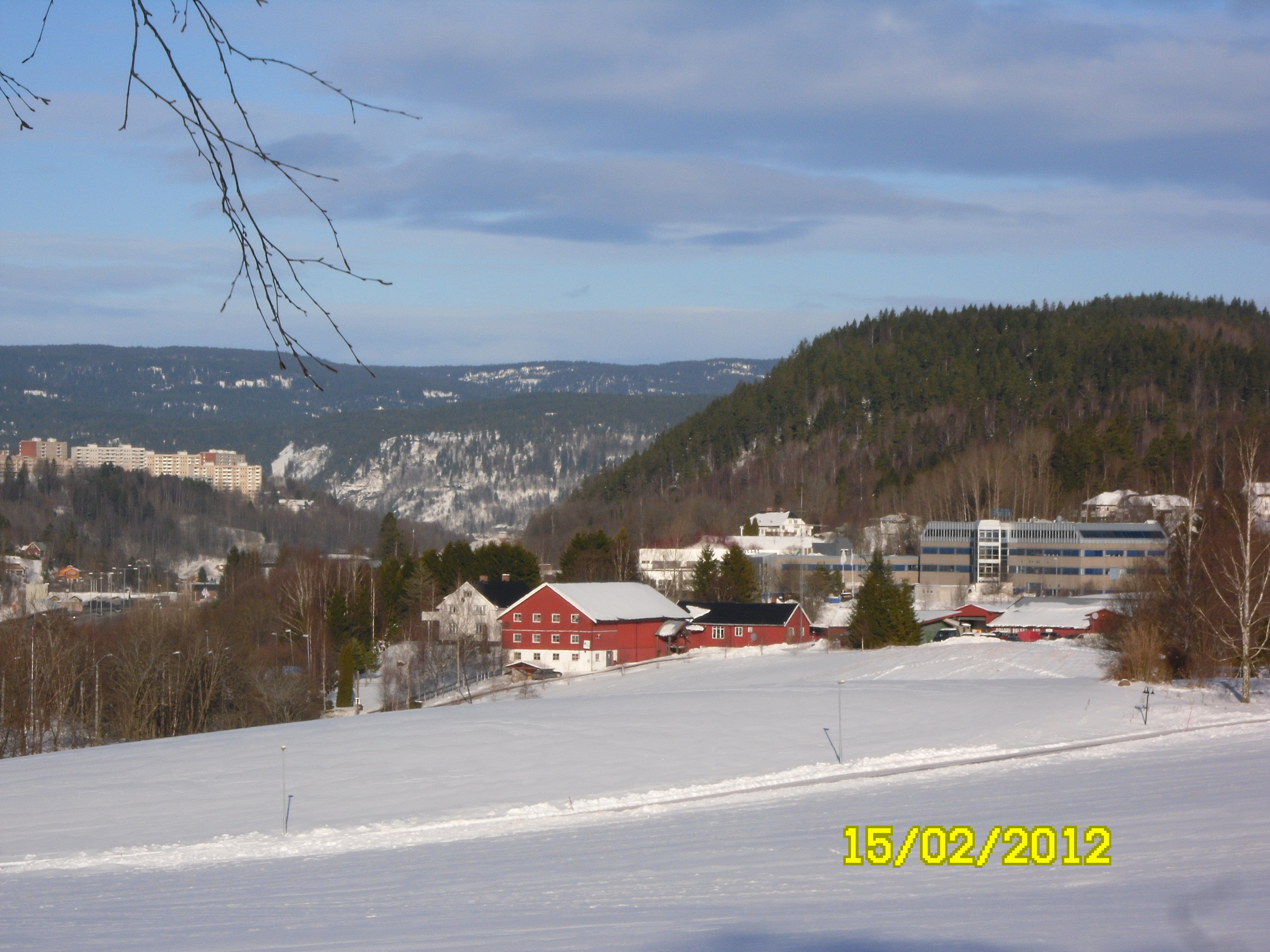 Nedre Eik foran, Eltek bakenfor til høyre. I bakgrunnen Kobbervikdalen med Fjell til venstre og Nordbykollen til høyre.