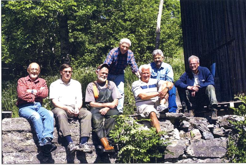 Fra v. Oscar Hauge. Arve Hoven. Roger Strøm Andresen. Reidar Halden. Tom Hayden. Willi Johansen og Hans Myhre Dugnadsgjengen som driver prosjekt Skjeldrumsaga fremover for Skoger og Konnerud Historielag. Peridevis og i tidlige faser har også andre (ganske mange!) enn de som er med på bildet, deltatt i dugnadsarbeidet.
