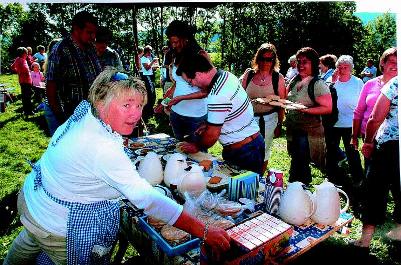 Kulturdagen på Skjeldrum samlet i år nærmer 200 personer. Her fra salgsdisken til Skoger Bygdekvinnelag, hvr det bl.a. var lefser,kaffe og saft å få kjøp av Vigdis Skaug.