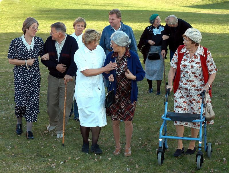 Foran Betty Sønsterød, Jorunn Albjerk, Inger Thorkilsen Bak : Ingrid Odden , Johan Stråle, Gry Strøm Andresen, Helge Stenseth, Karin Johansen og Kai-Roger Olsen