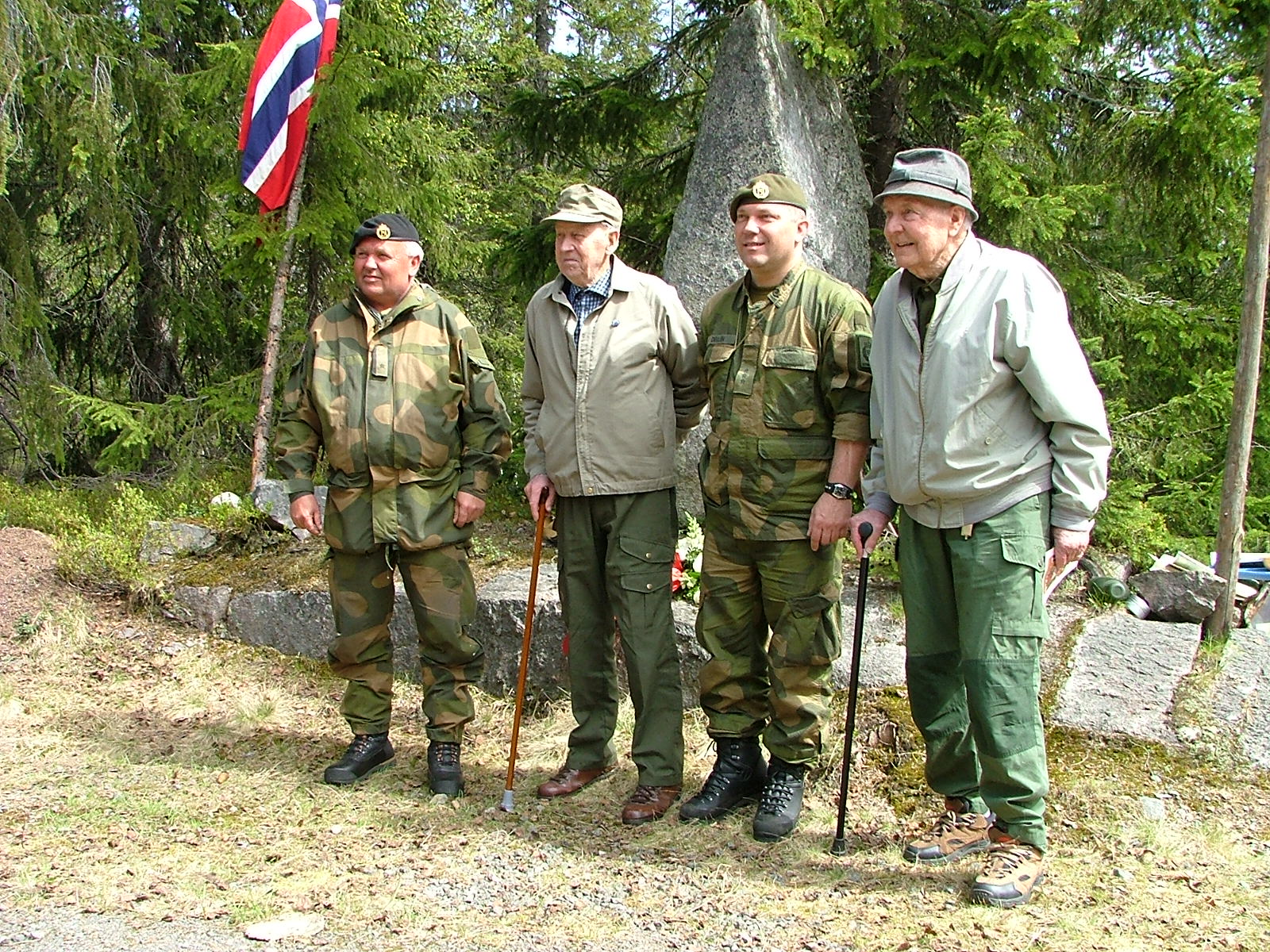 Fra venstre på bildet ser vi: NN, Gunnar Båsen, NN, Sverre Skurdal