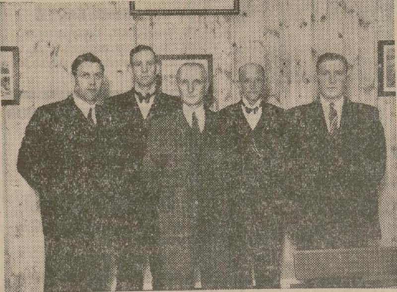 Bildet er tatt i 1935 og av er byggekomiteen på Vestbygda skole. Fra venstre: Formann Harald Haveraaen, Thomas Løkka, Johs. Beheim, H.J Jordbræk, Jørgen Kristiansen. Fotoet er hentet fra Nasjonalbibloteket og er fra avisen Fremtiden.