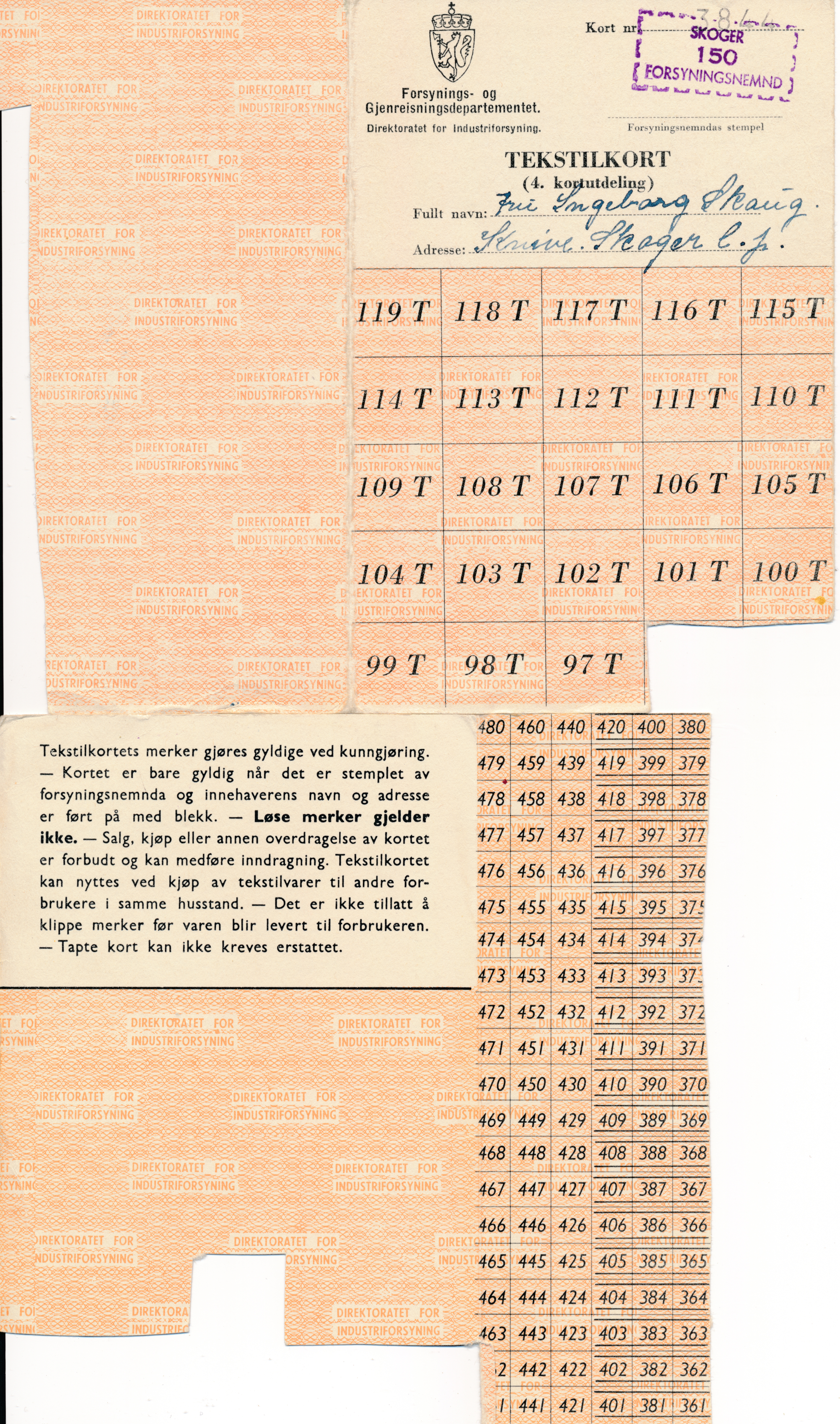 “Rasjoneringskort for tekstiler,” Skoger og Konnerud historielags bildesamling, besøkt 26. februar 2026, https://mail.skhist.nettsidetesting.no/items/show/226.
