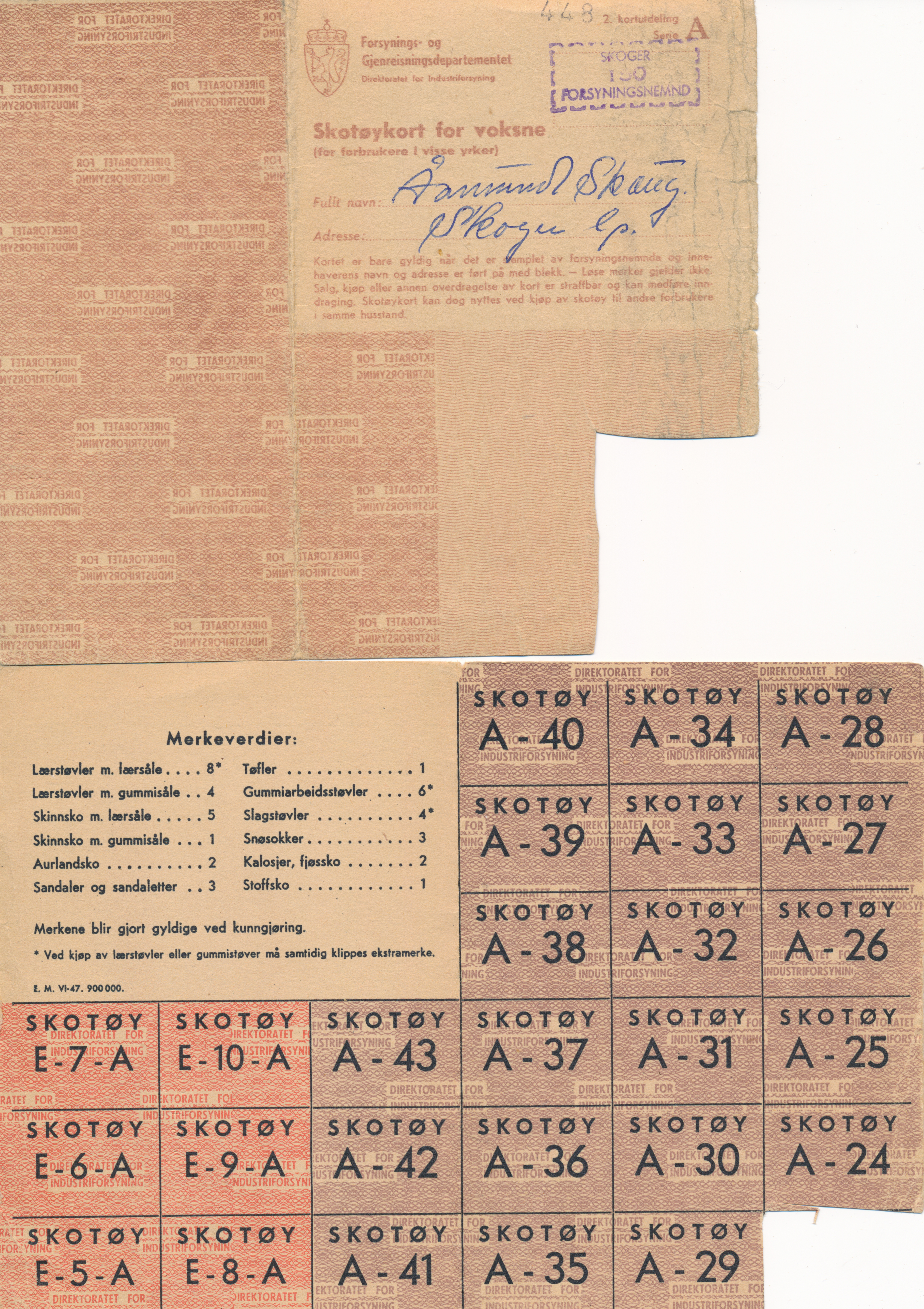 “Rasjoneringskort for skotøy,” Skoger og Konnerud historielags bildesamling, besøkt 26. februar 2026, https://mail.skhist.nettsidetesting.no/items/show/227.
