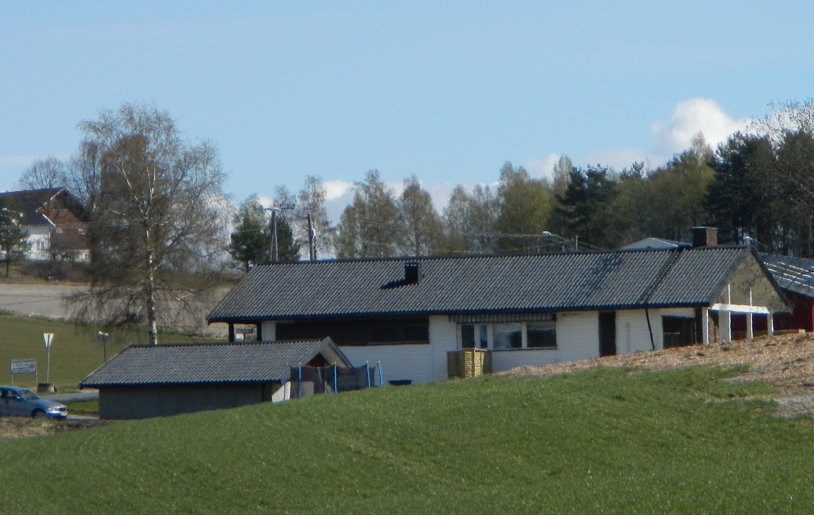 Foto: Utklipp fra Widerøes flyfoto 1962.Snekkerboden, et brunt hus til venstre midt på bildet. Rett over veien for Simens hjemsted Løse gnr. 57 bnr. 2