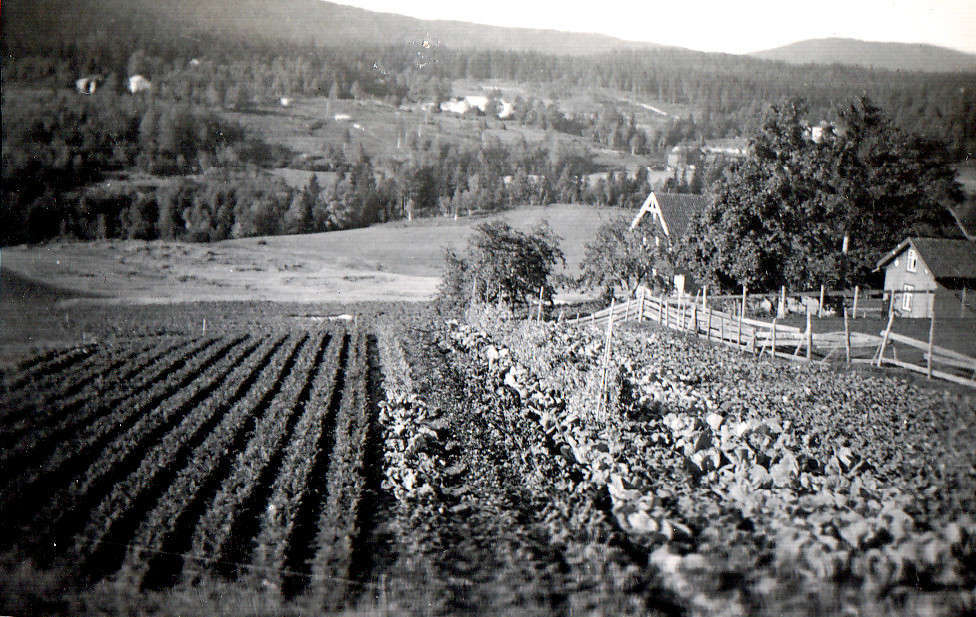 I bakgrunn ser vi Øvre Furuvold, og lengst til høyre bak buskene Kontorbygningen på Andorsrud