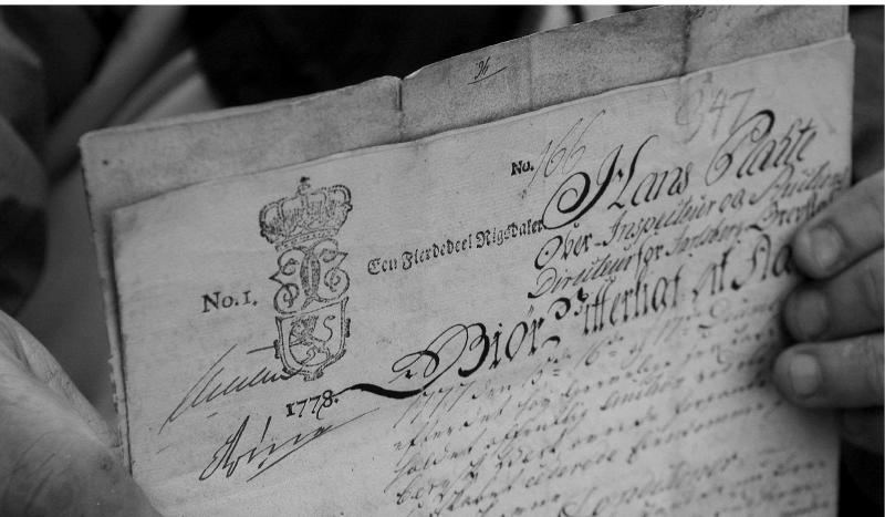 Knut Lyche har unike dokumenter etter grevens auksjon - og salget av sine eiendommer på Konnerud. Dokumentet er fra 1778.